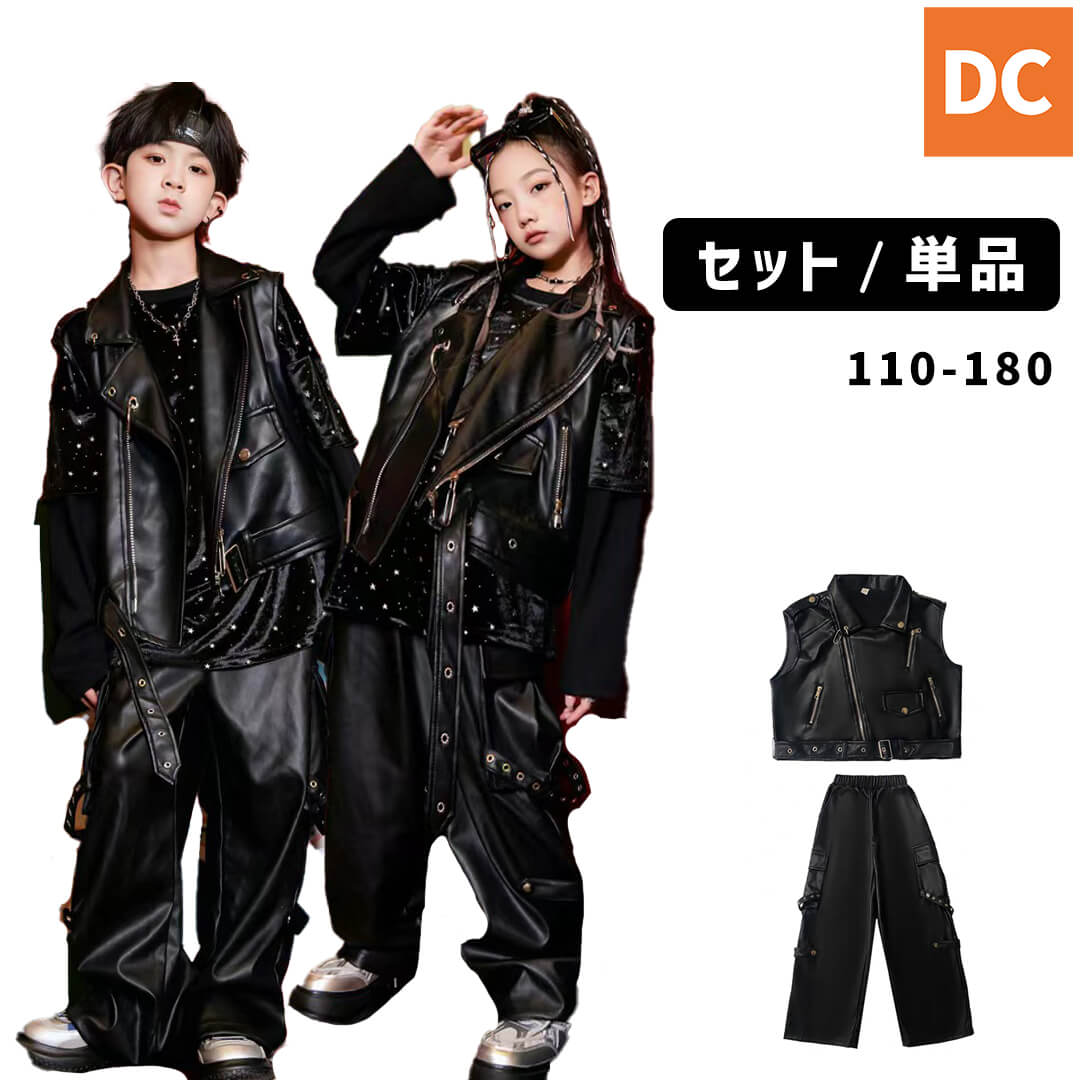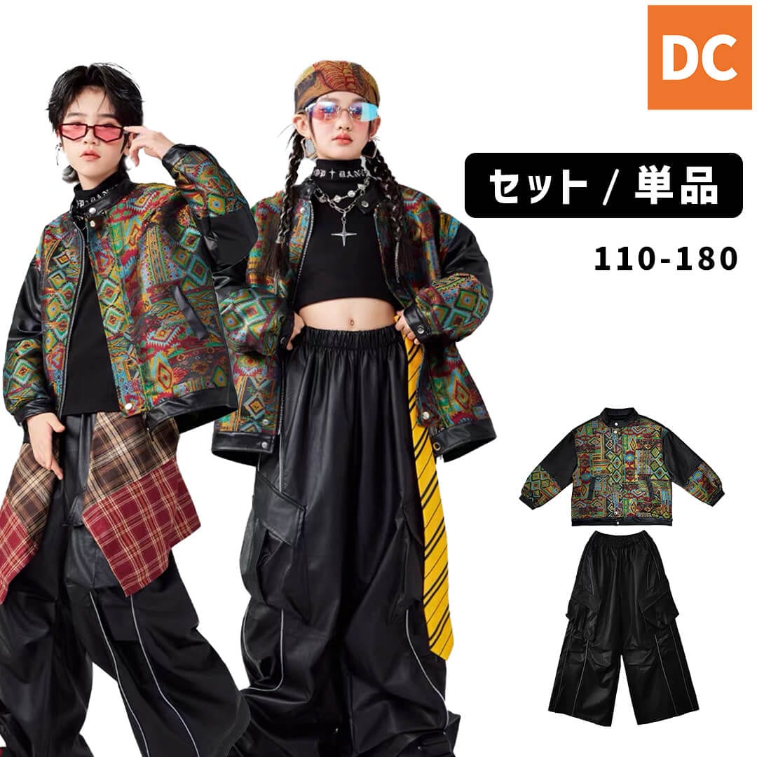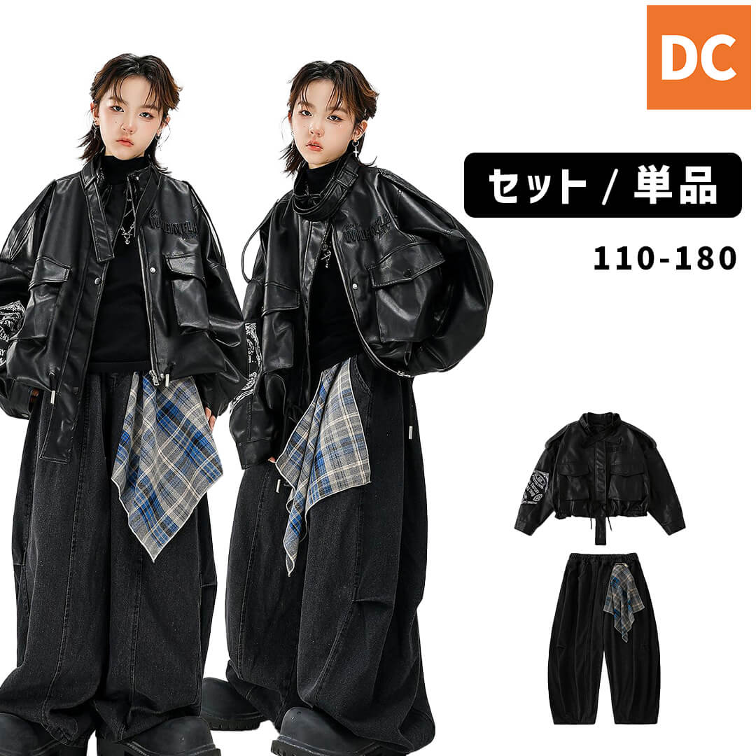 【クリアランスセール】すぐ届く!HIPHOP衣装 キッズダンス ユニセックス デニム アウター ブラック 長袖 ダボダボ 長ズボン【sale-0206】