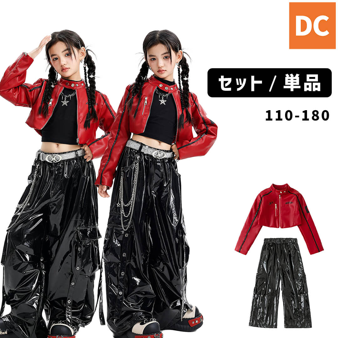 ユニセックス ストリート レザー レッド ブラック ベスト 長袖トップス ロングパンツ オーバーサイズ HIPHOP フェイクレザー【dc-2029】